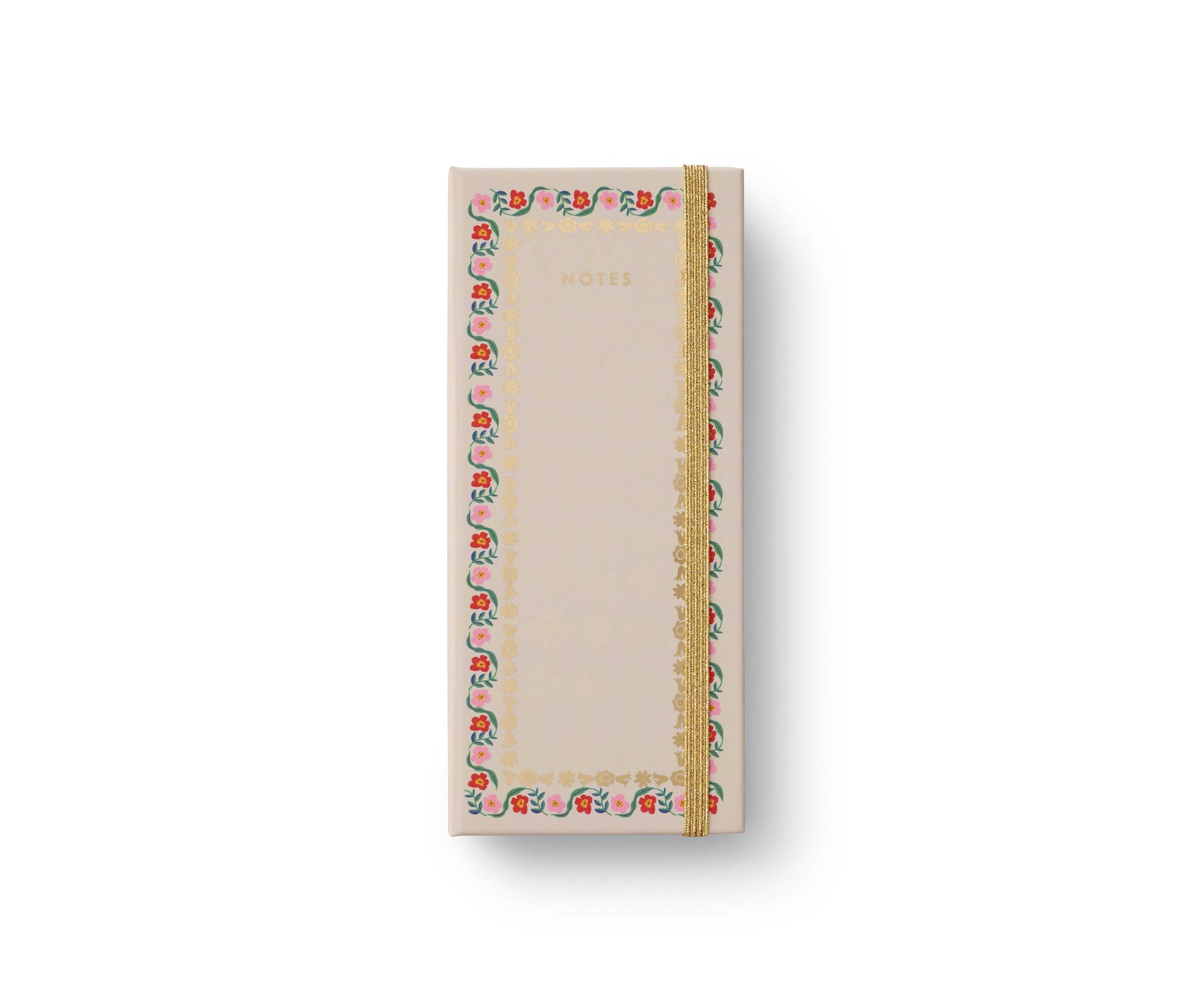 Who said sticky notes had to be yellow? Our sticky note folios include a tear-off pad for making lists and sticky notes for flagging pages and posting reminders. The hard covers feature our charming Delphine pattern and an elastic closure.