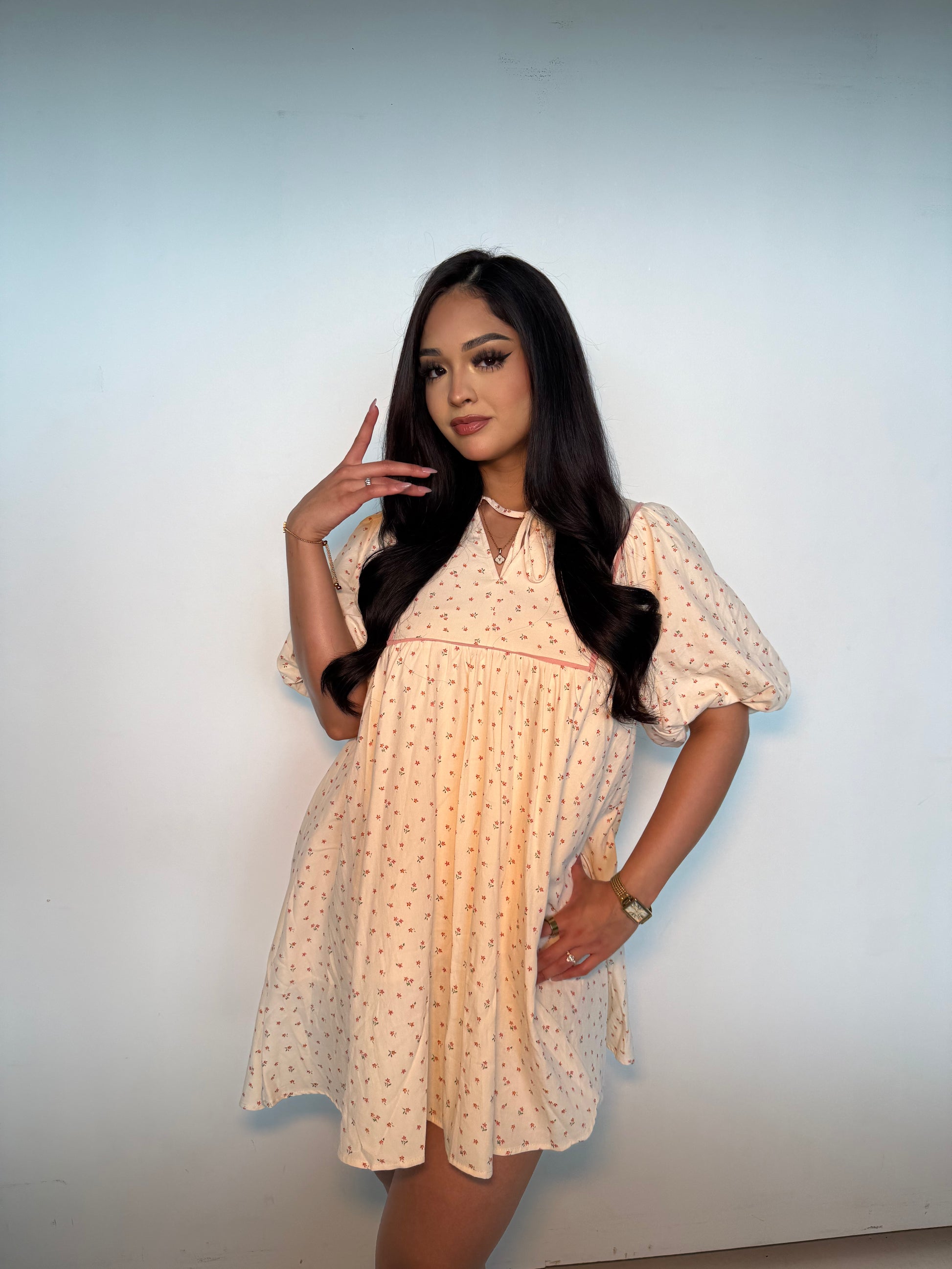 Sweet and effortlessly charming, the In a Good Way Puff Dress from Ozzirys is a flirty mini with a flowy silhouette. Featuring delicate puff sleeves and a subtle floral pattern, this dress is perfect for brunches, daytime outings, or any moment you want to feel light and feminine.