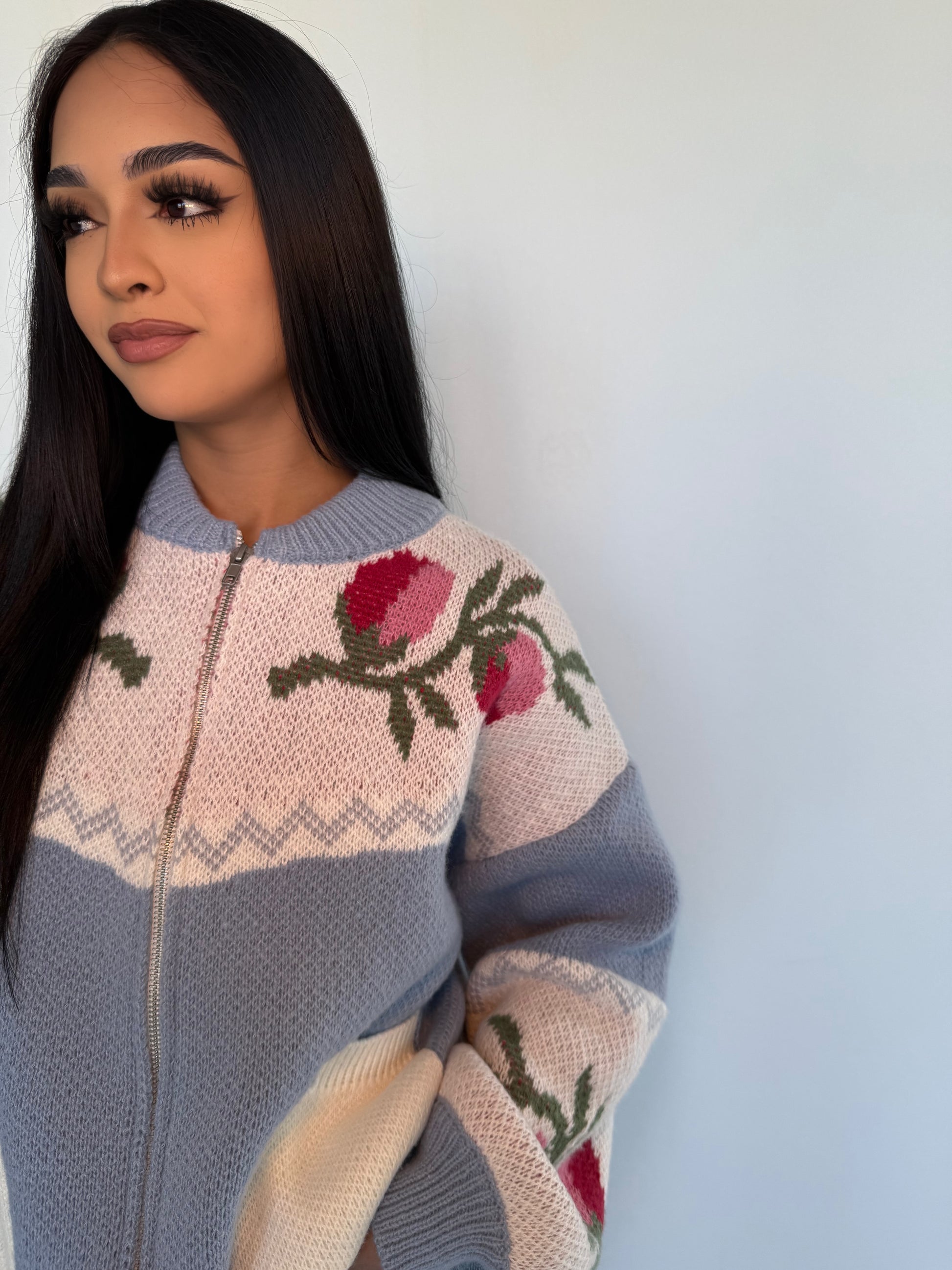 Bring a touch of spring to your wardrobe with our Tulipanes de Primavera Sweater — a cozy, statement piece that combines comfort with romantic charm. This soft knit zip-up sweater features delicate tulip embroidery across the chest and sleeves, adding a floral pop of color against its dreamy pastel base. Its relaxed, slightly oversized fit and deep front pockets make it as practical as it is beautiful, perfect for layering on breezy days or dressing up casual looks. Whether paired with jeans or a skirt, this sweater adds a sweet, timeless vibe to any outfit.