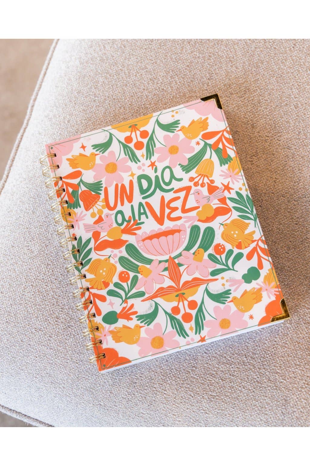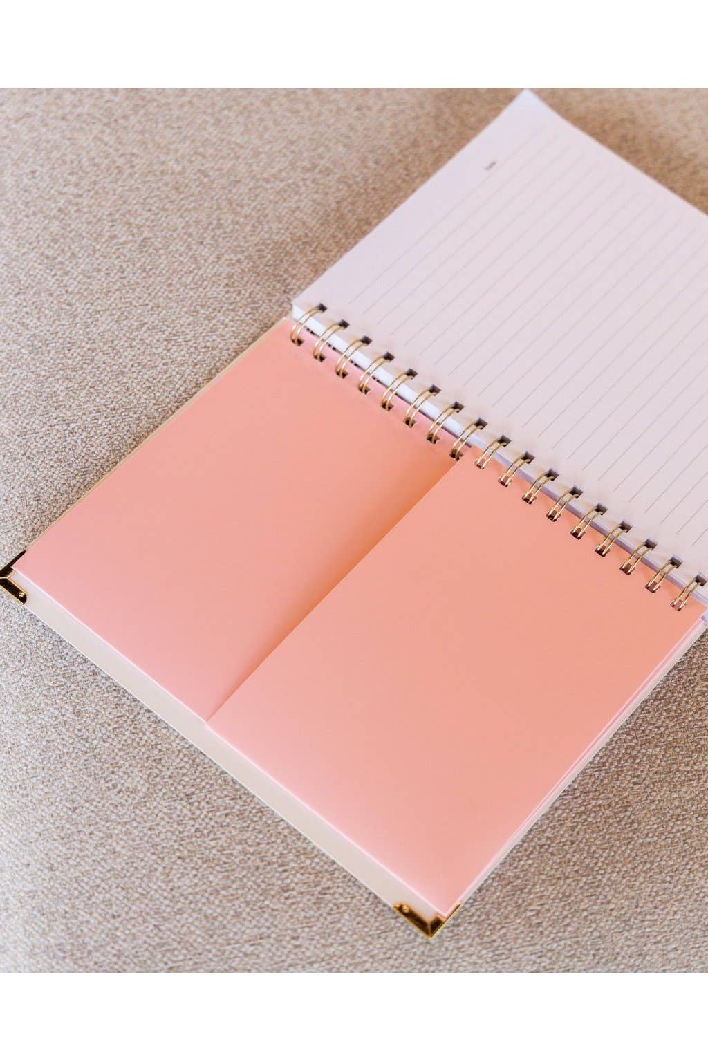 This beautiful spiral notebook features gold hardware, an inside pocket and wide ruled pages with space for all your notitas!